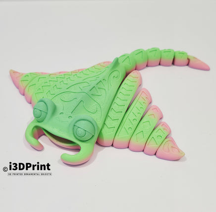 Dive into the enchanting world of marine elegance with our 3D Printed Articulated Manta Ray. This delightful creation features flexible wings and a playful, smiling demeanor, making it a unique addition to your collection of aquatic wonders.