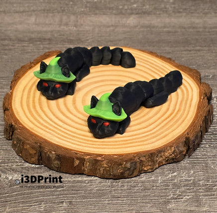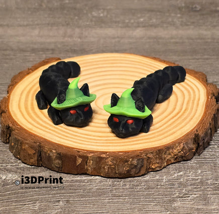 Uncover the magic with our adorable 3D Printed Black Cat wearing a Witch’s Hat. This poseable, articulated feline is designed with charming details that highlight its spooky cuteness.